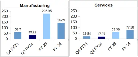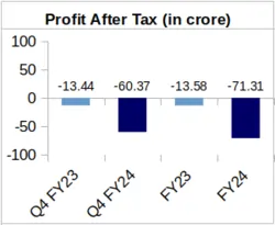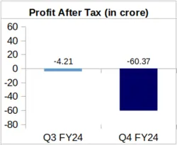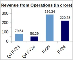 Services: During Q4 of FY-24, the company reported Rs. 17.07 crore as its revenue from this segment. This is 13.96% lower than the company’s Services revenue for Q4 of FY-23 which stood at Rs. 19.84 crore.