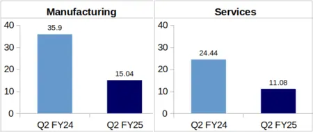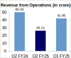 Manufacturing: This segment of the company brought in Rs. 15.04 crore during Q2 of FY-25 and Rs. 35.90 crore during Q2 of FY-24. This represents a YoY decrease of 58.11% in the company’s quarterly revenue from this segment.