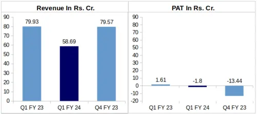 The company’s revenue from this segment fell by 35.35% YoY to Rs. 43.95 crore in Q1 of FY-24 from Rs. 67.98 crore which was reported for Q1 of FY-23.
