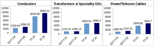 Power/Telecom Cables: This segment showed the highest YoY revenue growth, considering both Q4 FY-25 and FY-25.