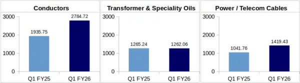 Conductors: This segment of the company brought in a revenue of Rs. 2,784.72 crore during Q1 of FY26 against Rs. 1,935.75 crore during Q1 of FY25. These numbers represent a remarkable 43.86% YoY growth.