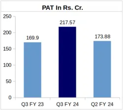 PAT of the company grew by 25.13% on a QoQ basis from Rs. 173.88 crore logged during Q2 of FY-24.