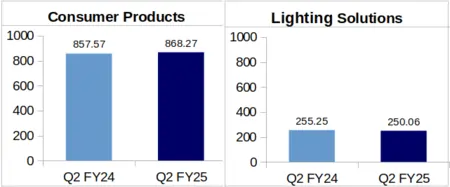 Consumer Products: Bajaj Electricals earned revenue of Rs. 868.27 crore during Q2 of FY-25 against Rs. 857.57 crore revenue reported for Q2 of FY-24, reflecting a marginal increase of 1.25% in the company’s segmental revenue.