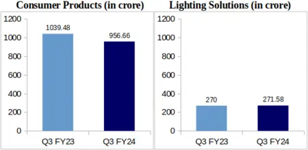 Consumer Products: Consumer Products segment of the company bought in a revenue of Rs. 956.66 crore during Q3 of FY-24. This reflects a YoY decrease of 7.68% from Rs. 1,039.48 crore logged during Q3 of FY-23.