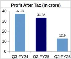 On standalone basis, the company reported a revenue of Rs. 1,289.72 crore and a Profit After Tax (PAT) of Rs. 33.36 crore during Q3 of FY-25.