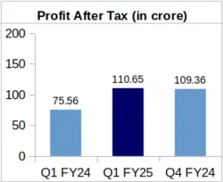 The company’s Q1 FY-25 PAT also showed an outstanding increase of 46.44% to Rs. 110.65 crore from Rs. 75.56 crore PAT during Q1 of FY-24.