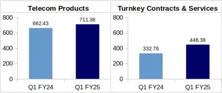 Telecom Products: This segment of the company brought in a revenue of Rs. 711.36 crore during Q1 of FY-25 against Rs. 662.43 crore during Q1 of FY-24. This showed a YoY growth of 7.39% in the company’s revenue from its Telecom Products segment.