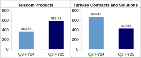 Turnkey Contracts and Solutions: HFCL’s Turnkey Contracts and Solutions segment quarterly revenue decreased by 35.75% to Rs. 429.53 crore during Q3 of FY-25 from Rs. 668.48 crore in Q3 of FY-24.