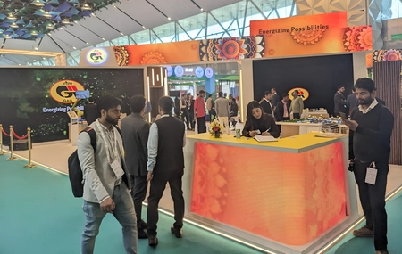 Jakson Green also displayed a model of its 10 Tonne Per Day (TPD) Carbon dioxide to Methanol synthesis plant, which is currently being developed at NTPC’s Vindhyachal Thermal Power Plant in Singrauli, MP. As per the company, this is the world’s first such project. Jakson Green’s technology captures Carbon dioxide from the flue gases of the TPP, which is then combined with Green Hydrogen generated in proximity to the TPP. These two gases are then fed to a reactor, where syn-gas (a mixture of Carbon monoxide and Hydrogen) is produced. This syn-gas can then be used to derive methanol. This project drew attention of several visitors at the event, and upon query, Jakson Green representatives shared that typically a 10 TPD CO2 to methanol plant would entail a cost estimate of about Rs. 400 crore.