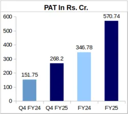 Earnings Per Share (EPS) of the company were reported as Rs. 10.08 for Q4 of FY25, and Rs. 21.80 for the entire FY25.
