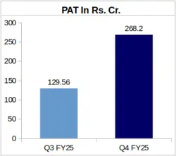 KEC International logged a revenue of Rs. 6,872.12 crore during Q4 of FY25, which represents 11.47% Year-over-Year (YoY) growth from its Q4 FY24 revenue of Rs. 6,164.83 crore. Q4 PAT of the company also followed an upward trend, rocketing by a remarkable 76.74% to Rs. 268.20 crore in FY25 from Rs. 151.75 crore in FY24.