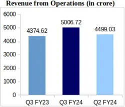 On a Quarter-over-Quarter (QoQ) basis, the company’s revenue increased by 11.28% from Rs. 4,499.03 crore recorded for Q2 of FY-24.
