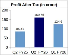 The company’s Earnings Per Share (EPS) stood at Rs. 6.04 during Q2 FY26 against Rs. 3.32 during Q2 FY25.