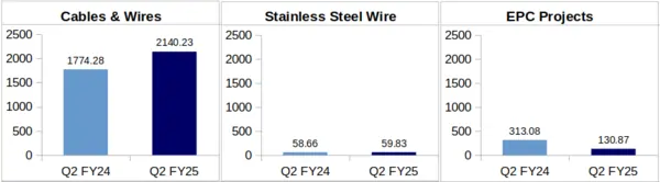 Stainless Steel Wire: KEI Industries’ revenue from this segment increased slightly by 2% from Rs. 59.83 crore during Q2 of FY-25 against Rs. 58.66 crore during Q2 of FY-24.