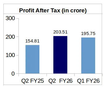 On Year-over-Year (YoY) basis, the company’s consolidated revenue from operations jumped by 19.38% to Rs. 2,726.35 crore during Q2 FY26 from Rs. 2,283.82 crore revenue reported for Q2 FY25. Profit After Tax (PAT) of the company increased to Rs. 203.51 crore in Q2 FY26 from Rs. 154.81 crore during Q2 FY25. This represents YoY increase of 31.46% in the company’s profit.