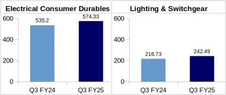 Electrical Consumer Durables: The company’s quarterly revenue from this segment jumped to Rs. 574.33 crore during Q3 of FY-25 against Rs. 535.20 crore in Q3 of FY-24. This showed a YoY growth of 7.31% in the company’s quarterly ECD segment revenue.