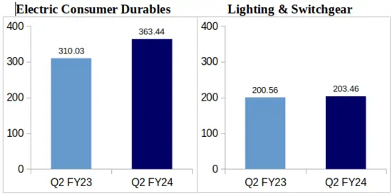 Lighting & Switchgear: Lighting & Switchgear segment of the company brought in a revenue of Rs. 203.46 crore in Q2 of FY-24. This reflects a slight YoY increase of 1.45% from Rs. 200.56 crore logged during second quarter of FY-23.