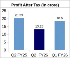 On Quarter-over-Quarter (QoQ) basis, the company’s topline was slightly down by 5.13% from its Rs. 451.12 crore revenue clocked during Q1 of FY26. The company’s PAT in Q2 FY26 decreased significantly by 28.38% from Q1 FY26 PAT of Rs. 18.50 crore.