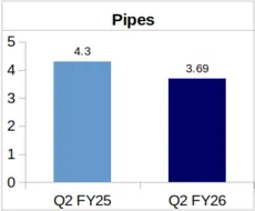 Pipes: Paramount Communications’ Pipes segment quarterly revenue decreased by 14.19% YoY to Rs. 3.69 crore during Q2 of FY26 from Rs. 4.3 crore in Q2 of FY25.