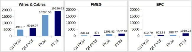 EPC: Polycab’s revenue from this segment surged YoY by 46.75% to Rs. 602.83 crore in Q4 of FY-25 from Rs. 410.79 crore in Q4 of FY-24.