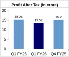 Rajratan Global Wire quarterly PAT also decreased by 11.34% YoY to Rs. 13.52 crore during Q1 FY26 from Rs. 15.25 crore reported for Q1 FY25.