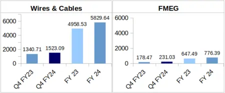 Wires & Cables: RR Kabel’s revenue from this segment increased YoY by 13.60% to Rs. 1,523.09 crore in Q4 of FY-24 from Rs. 1,340.71 crore logged during Q4 of FY-23.