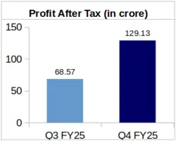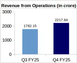 RR Kabel’s Q4 revenue from operations grew by 24.45% from Rs. 1,782.15 crore during Q3 of FY-25. The company’s PAT also showed a significant increase of 88.32% from its Rs. 68.57 crore Q3 FY-25 profit.