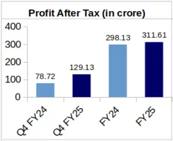 The company’s EPS was reported as Rs. 11.43 during Q4 of FY-25 and Rs. 27.58 during entire financial year 2024-25.