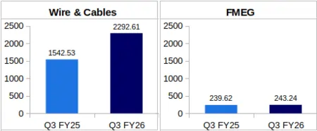 As for the Fast-Moving Electrical Goods (FMEG) business vertical, a revenue of Rs. 243.24 crore was seen in Q3 FY26. As for YoY performance, the company saw a steady growth with a 1.51% increase from Q3 FY25’s revenue of Rs. 239.62 crore.