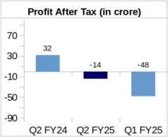 Sterlite Tehnologies’ Loss Per Share stood at Rs. 0.28 in Q2 of FY-25 against Earnings Per Share (EPS) of Rs. 0.86 during Q2 of FY-24.