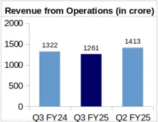 Sterlite Technologies’ Q3 FY-25 revenue decreased by 4.61% to Rs. 1,261 crore from Rs. 1,322 crore revenue during Q3 of FY-24. The company reported a loss of Rs. 24 crore during third quarter of FY-25 which was down by 59.32% from STL’s loss of Rs. 59 crore during Q3 of FY-24.