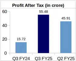 Transformers & Rectifiers India reported a standalone revenue of Rs. 545.31 crore for Q3 of FY-25 and a Profit After Tax (PAT) of Rs. 50.51 crore for the same period.