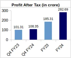 YoY Comparison of Vindhya Telelinks Financial Figures: Q4 FY-24 vs. Q4 FY-23 & FY-24 vs. FY-23