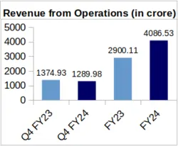 During the closing quarter of FY-24, Vindhya Telelinks clocked Rs. 1,153.14 crore as revenue from its EPC business. This shows a decrease of 3.06% from Rs. 1,189.48 crore revenue, logged during Q4 of FY-23.