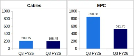 Cables: This segment of the company brought a revenue of Rs. 198.45 crore in Q3 FY26 and Rs. 209.75 crore in Q3 FY25, representing a YoY decrease of 5.39%.
